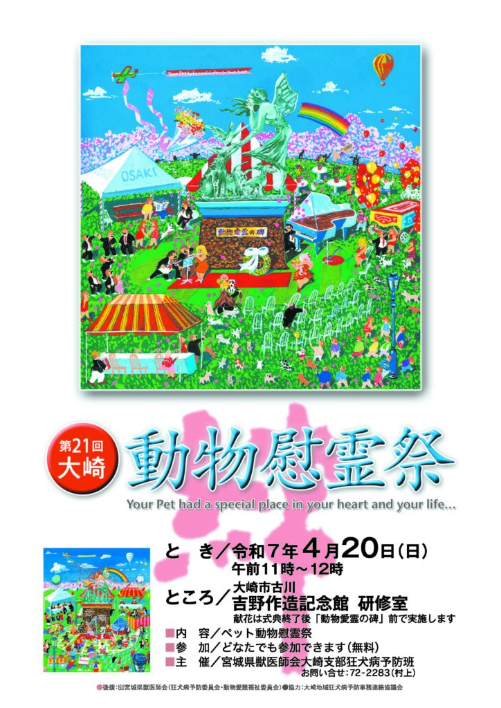 今年で21回目の「大崎 動物慰霊祭」が開催されます。