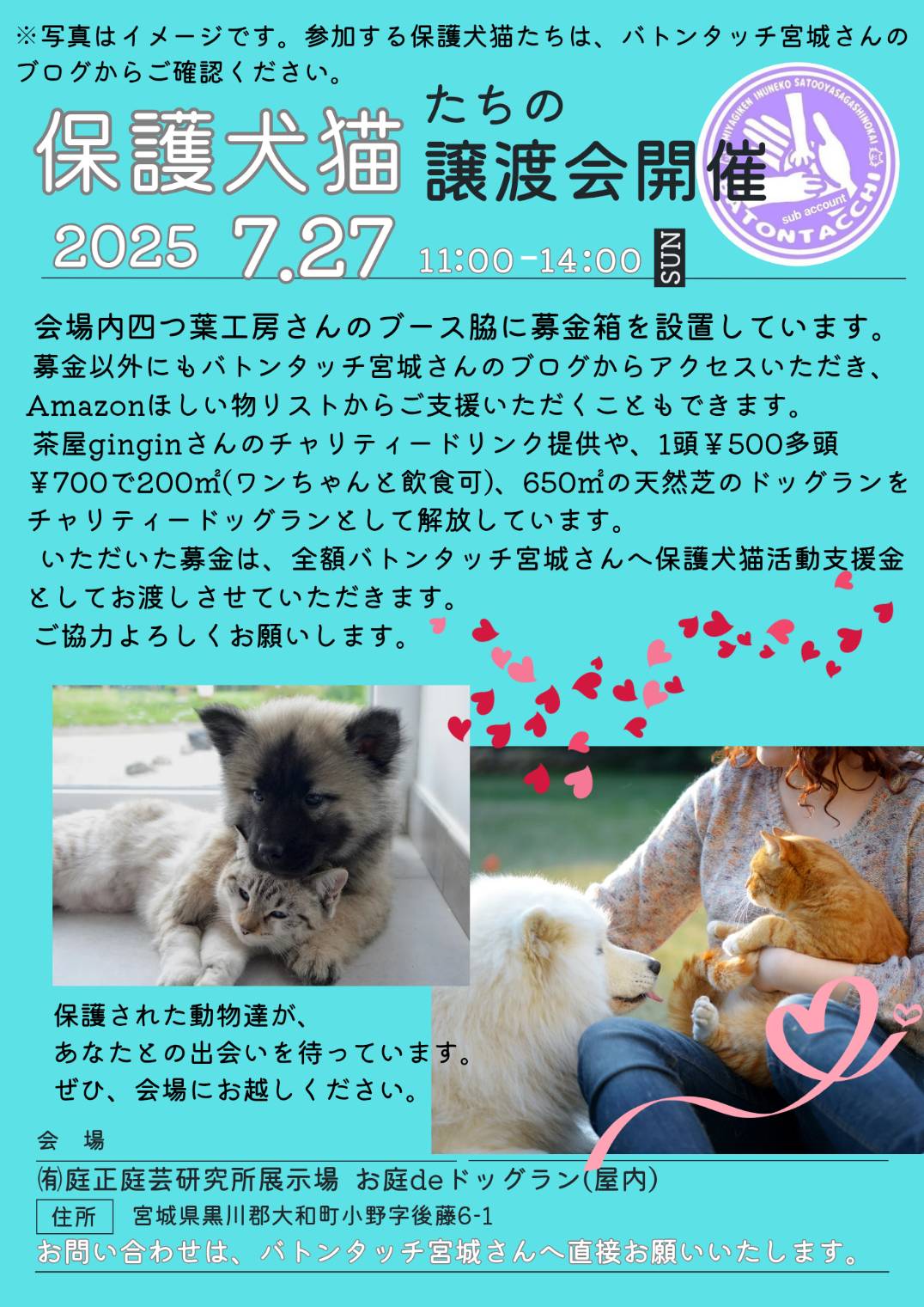 保護犬猫たちの譲渡会開催 in 庭正庭芸研究所