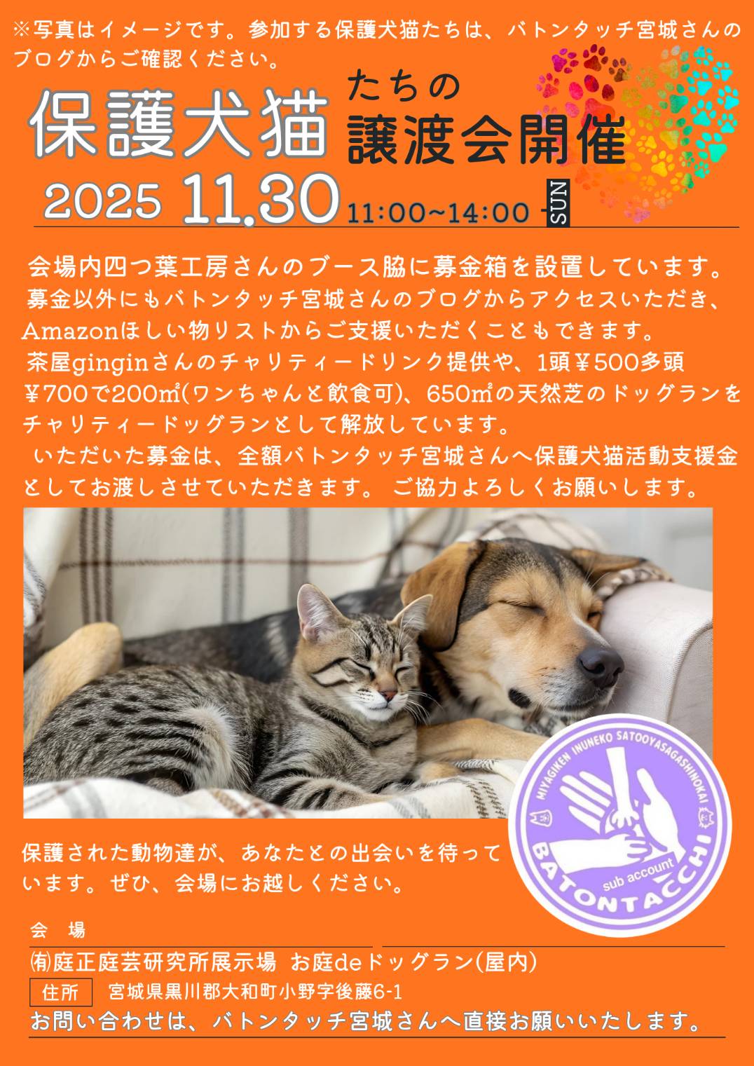 保護犬猫たちの譲渡会 in 庭正庭芸研究所