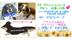 7月12日(土)に開催される保護犬猫のお迎え相談&チャリティ販売会のお知らせです。