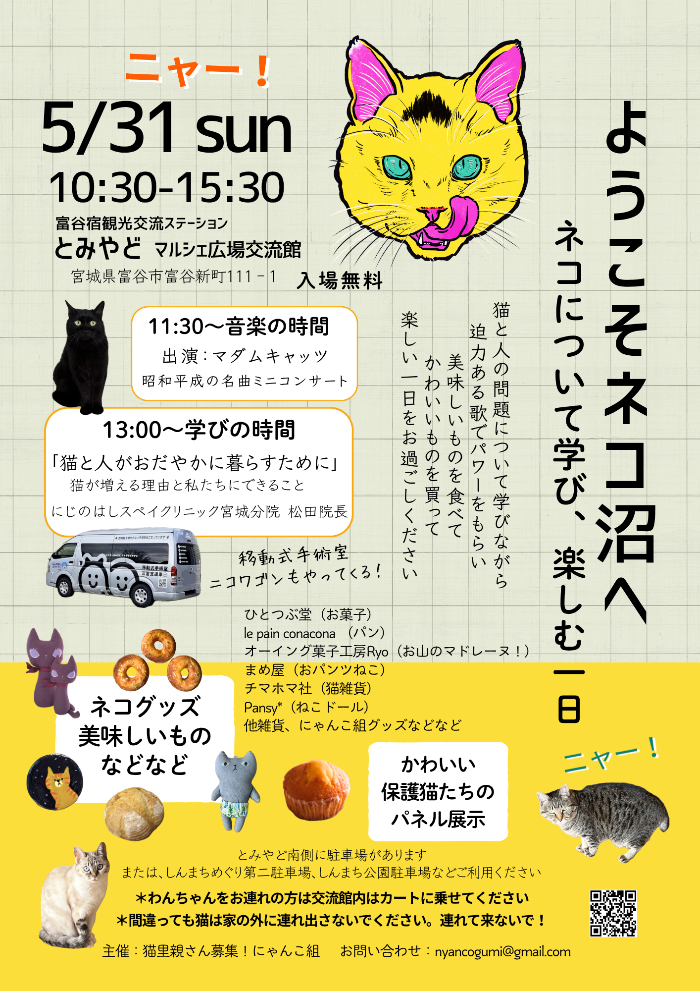 宮城県で保護猫の里親募集をしている「猫里親さん募集!にゃんこ組」による、猫イベントです。