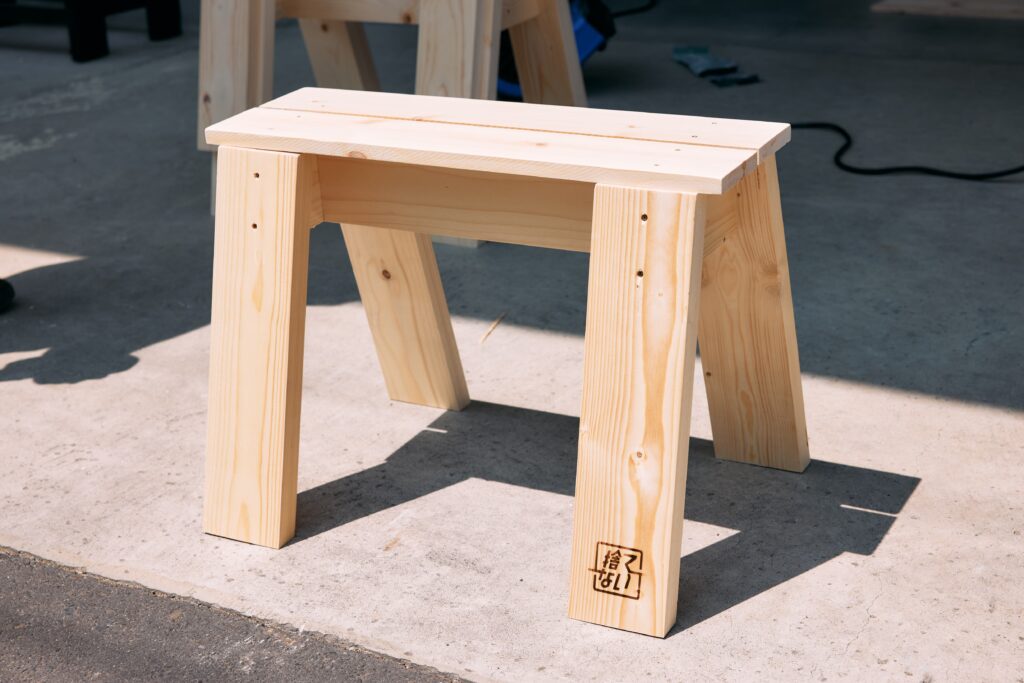 本来捨てられてしまうはずだった端材や廃材を使用して「捨てないベンチ」を作成しました。