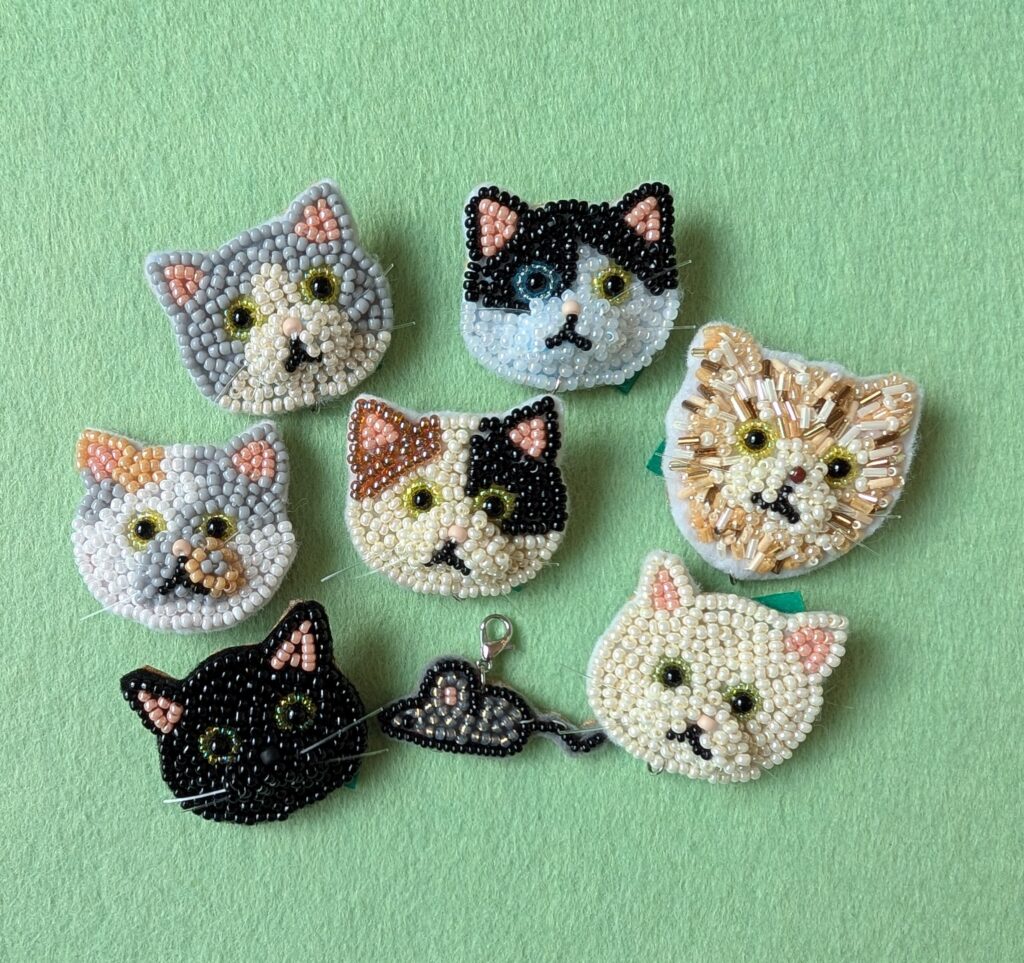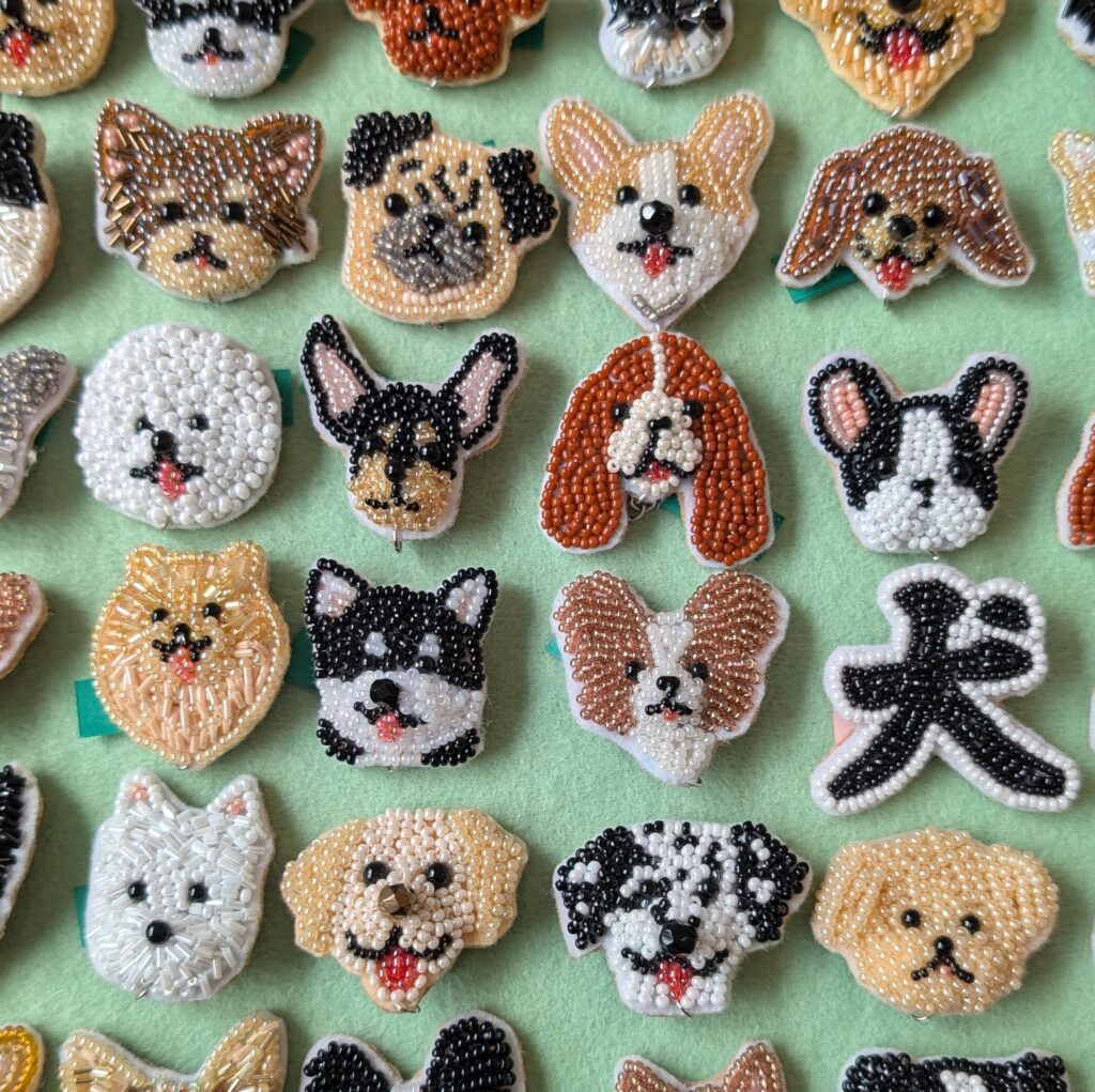 ワンちゃん・ネコちゃんをはじめ、動物・植物・食べ物等、いろいろなモチーフをビーズブローチにしました。