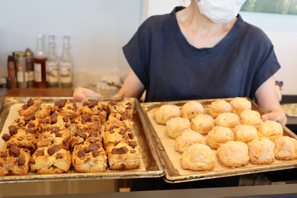 焼きあがったばかりのスコーンは自販機設置のSHOPでしか購入できない。大人気ですぐに売り切れるのでカフェに来る前に寄って購入することをお勧めする