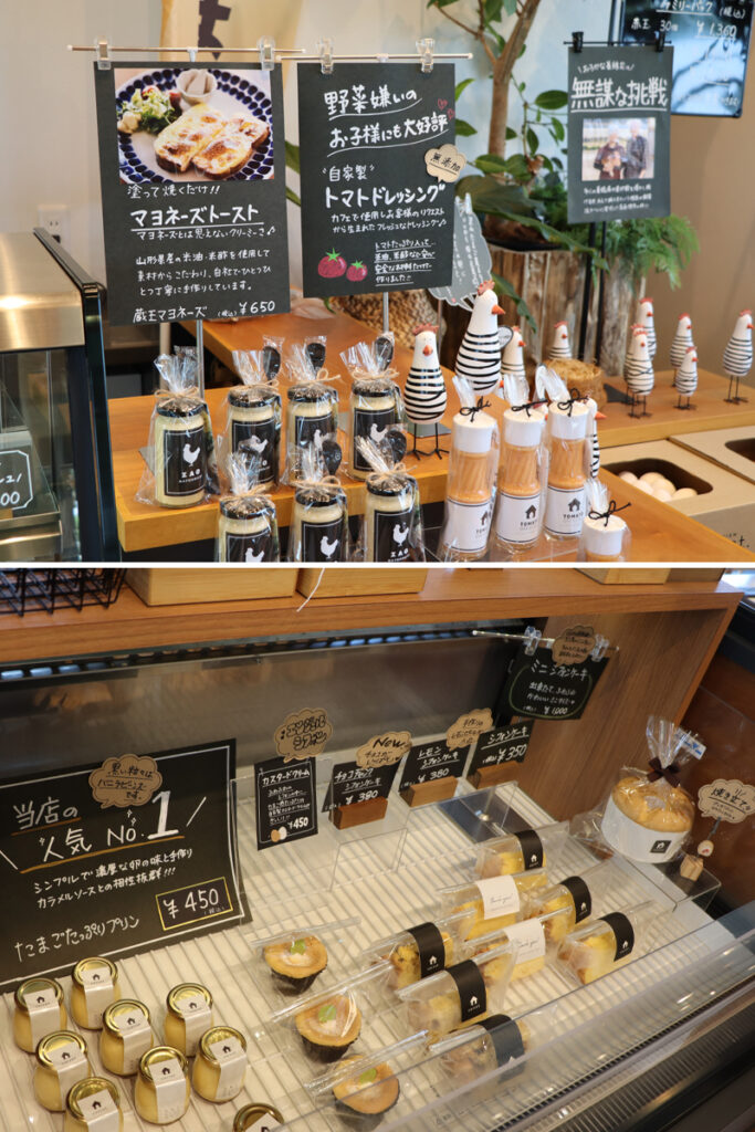 朝穫れの「眠れる森のたまご」や手作りのスイーツはテイクアウトもできるので帰りにお土産に購入していく人も多い。