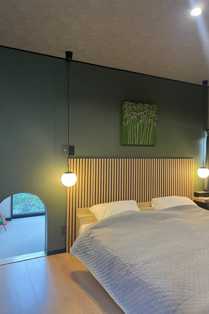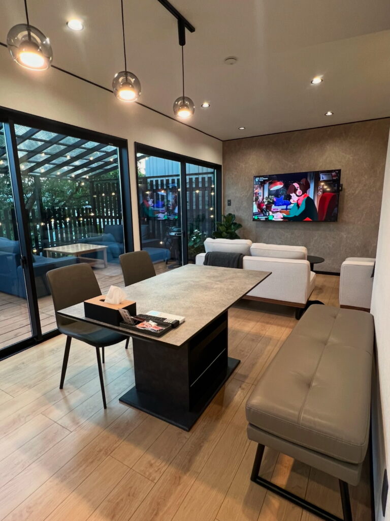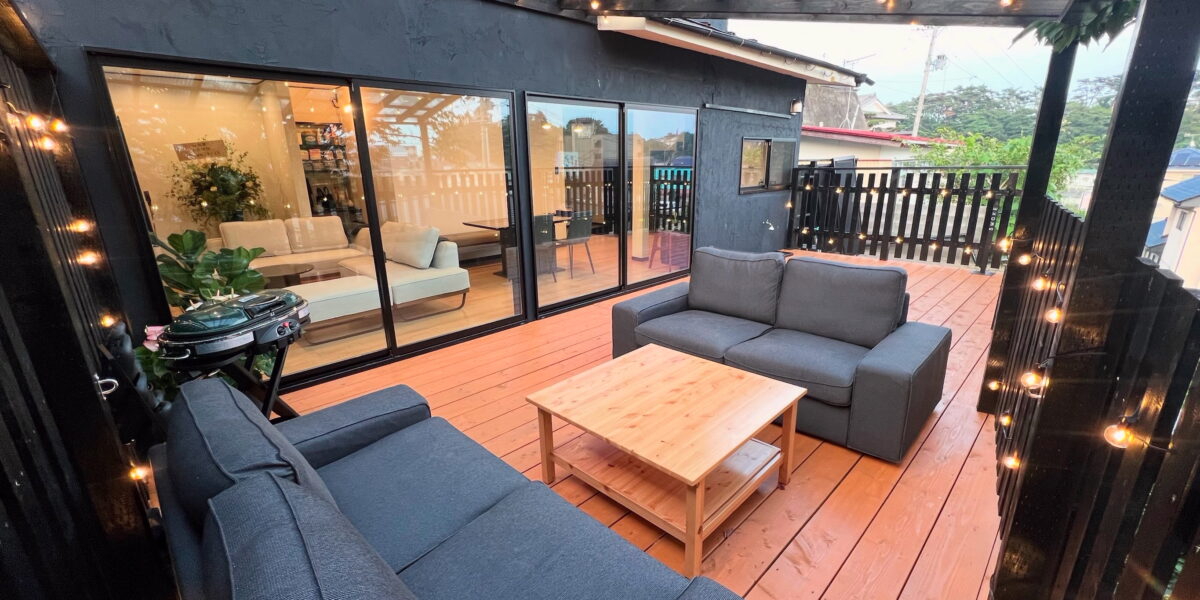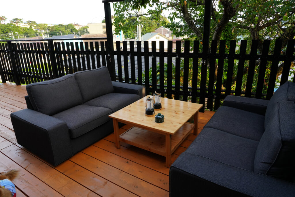 築55年の民家を3か月かけてオーナー自ら職人と共にフルリノベーションしたという2階建てのこの宿は、1階には16.5畳のLDKとバス・トイレ別の水回り、そして外にはBBQも楽しめる広々としたウッドデッキのテラスがあり開放感を感じさせる。2階には6畳と8畳のベッドルーム、そしてそのどちらからもアクセスできる素敵な小部屋、「パウパウルーム」がある。カラフルで遊び心あふれるこの空間は、愛犬とくつろいだり、旅の記念に写真を撮ったりできる、フォトジェニックな一角だ。