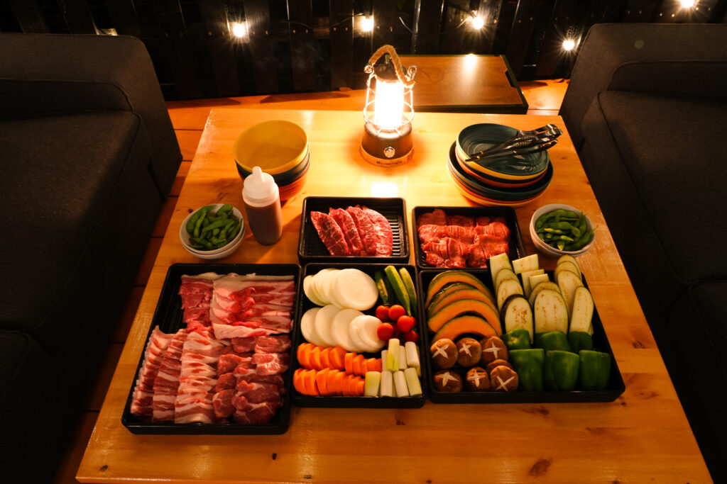 手ぶらで来たい人にはこれ!オプションの夕食のBBQセット(写真は4人前)予約時に申し込むと冷蔵庫の中に準備されている
