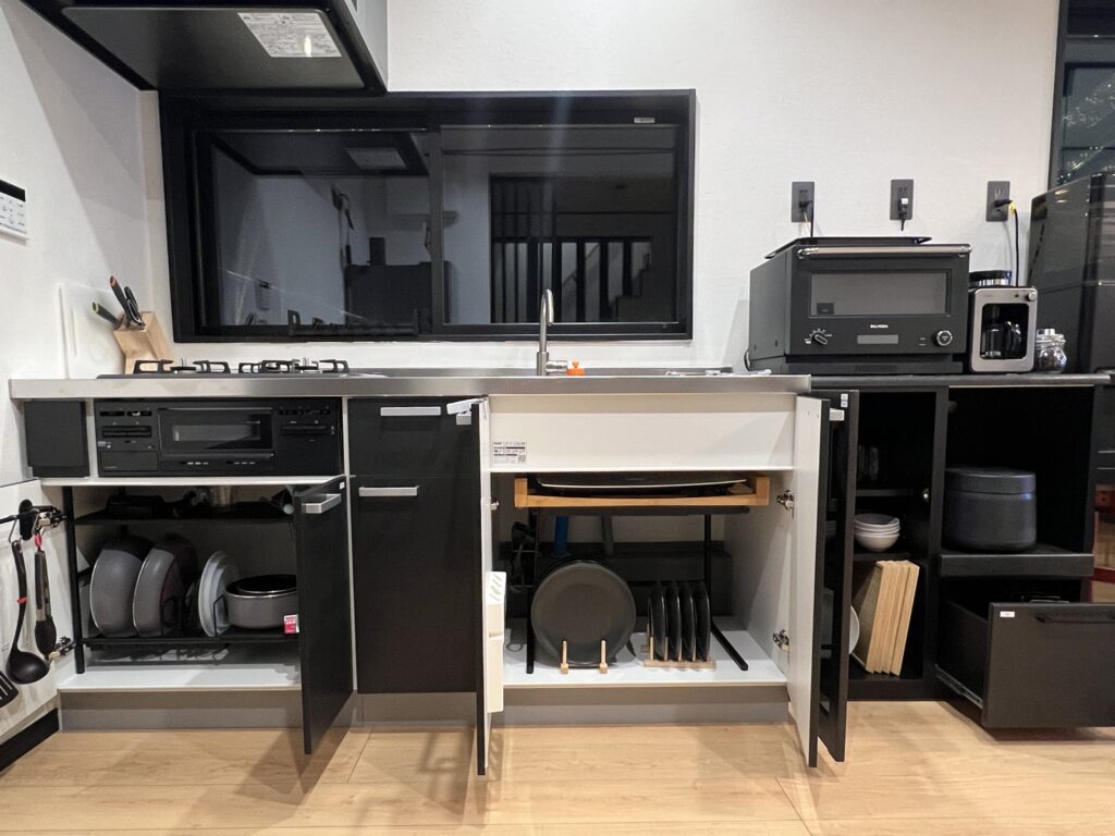 1F キッチン 調理器具や食器、調味料などが自由に使えるようになっている