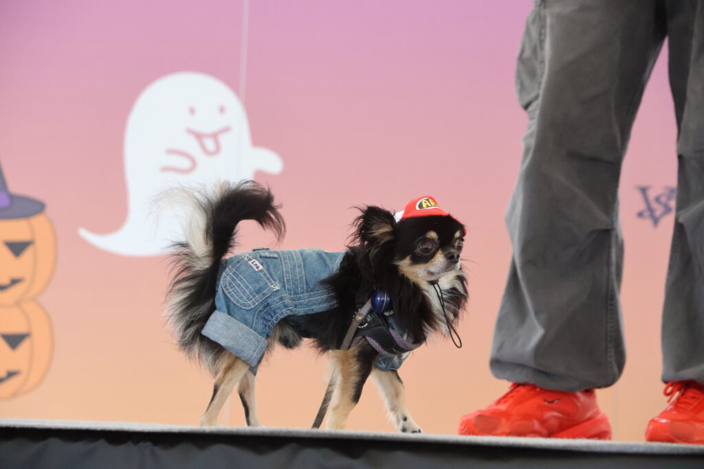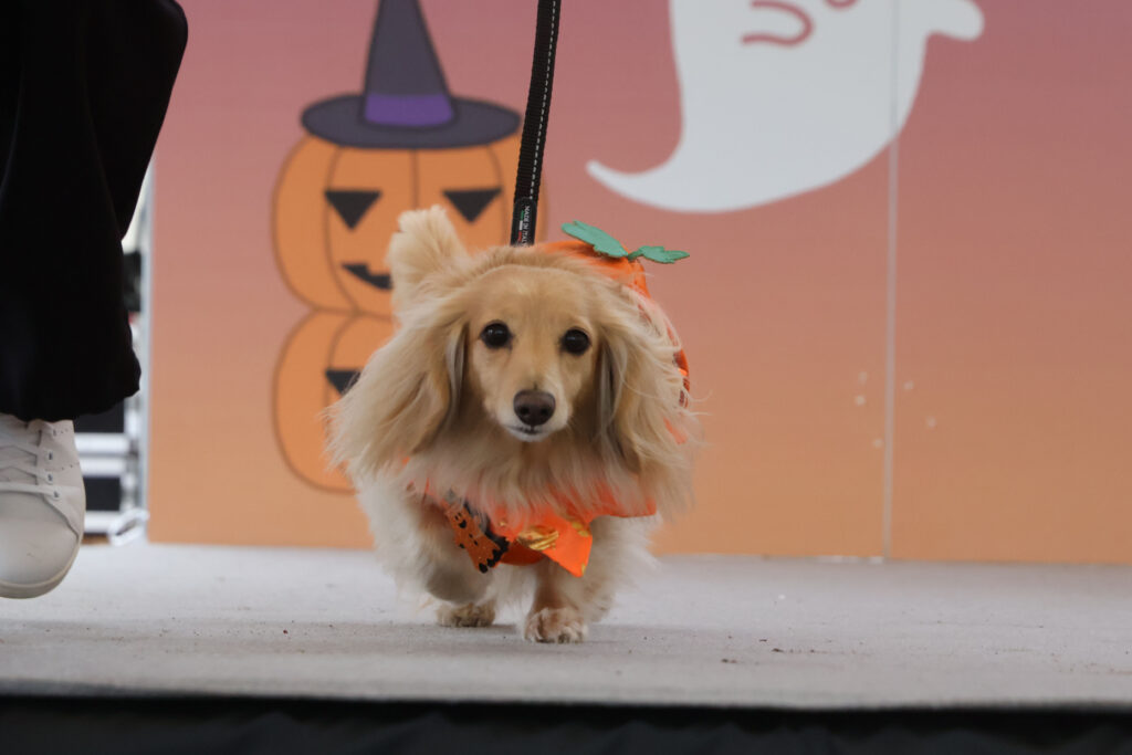新企画!ハロウィン目前の「どうぶつの仮装大会」では、飼い主の思い思いの衣装のわんちゃんが登場‼かぼちゃや魔女など、キュートな装いに会場も沸き、拍手が巻き起こった。