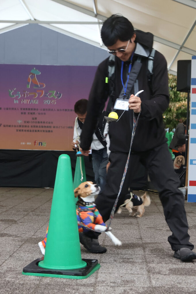 雨によりステージ側で縮小されたが、飼い主と一緒に三角ポールをくるりと回ってゴールへ!普段はできる子も場所が変わると…?そんな“あるある”に会場は笑いと応援が飛び交い、温かい拍手で一体感に包まれました。