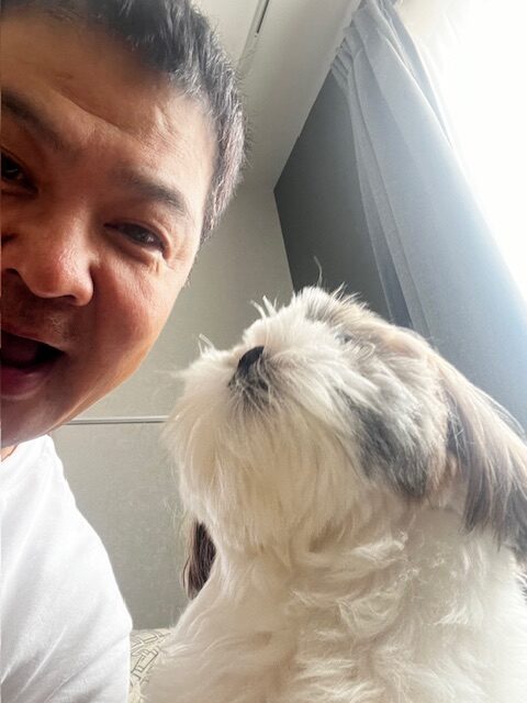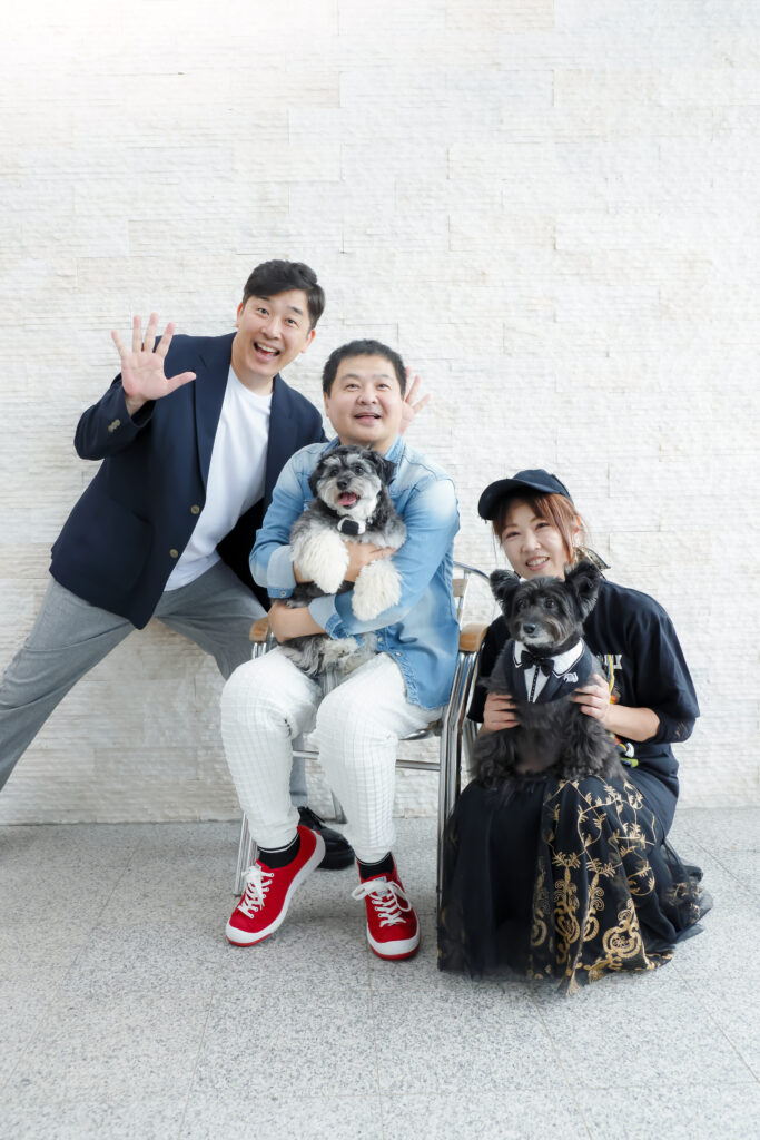あっという間に幕を閉じた独演会。まだまだ余韻が残っているところだが、いよいよお楽しみの『方正師匠と一緒の愛犬撮影会」。師匠は家族大好き&愛犬家で、これはファンの間ではとても有名な話。妻と誕生日が一緒、という運命的なシーズーのチャチャちゃんは、師匠が大阪へ拠点を移す際に娘さんが一目惚れした子で、娘さんが命名したそう。多忙な公演の合間に帰宅した師匠を一瞬で、ただのお父さんに戻してくれる魔法の存在だ。毎朝のチャチャちゃんとのお散歩が楽しみで、「行く?の合図を待ってるんですよ。自宅に帰ると玄関にお迎スに来てくれるんですぅ〜あれがほんまに本当に籍しいんですよ!」。