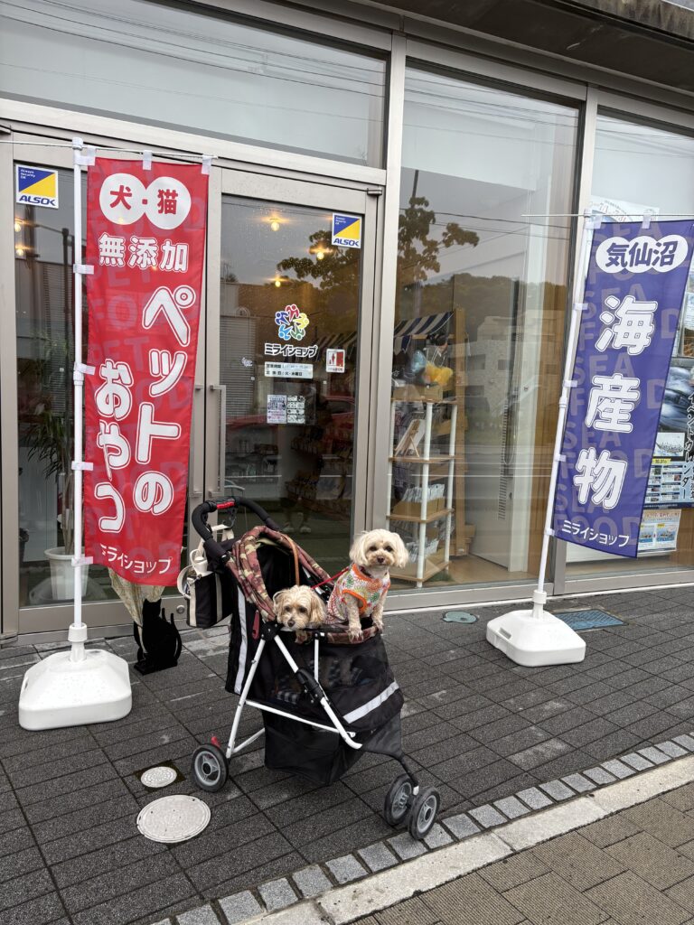 「魚屋が作った無添加のペットフードを気仙沼からお届けします。ぜひ足を運んでいただいて、お気に入りのフードを見つけつつ、気仙沼を満喫してください」というスタッフの米倉さんによると、施設にあるパーキングよりも道路を挟んだ斜め向かいのパーキングがおすすめとのこと。こちらは3時間無料のパーキングなので、ゆっくり食事や買い物が楽しめる。内湾の対岸にある明神崎の赤い遊歩道まで散歩して、戻ってきたらミライショップで愛犬のおやつをお買い物。そして自分たちの食事やスイーツなどもテイクアウトしたら、ないわん広場のデッキで海を見ながらゆっくりいただく。そんなデートコースはいかがだろうか。