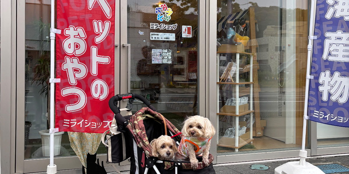 気仙沼市の内湾には商業観光施設の「迎(ムカエル)」「結(ユワエル)」、「拓(ヒラケル)」と、まちづくりの拠点施設「創(ウマレル)」の4施設があり、地元の食材を使ったグルメやここでしか購入できない土産と出会えるおすすめのスポットとなっている。この中の「創(ウマレル)」の建物の1階に、今年の4月無添加ペットフードを扱うお店「ミライショップ」がオープンした。