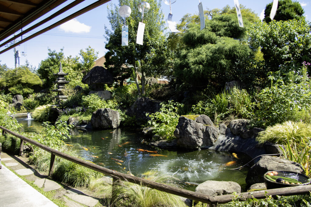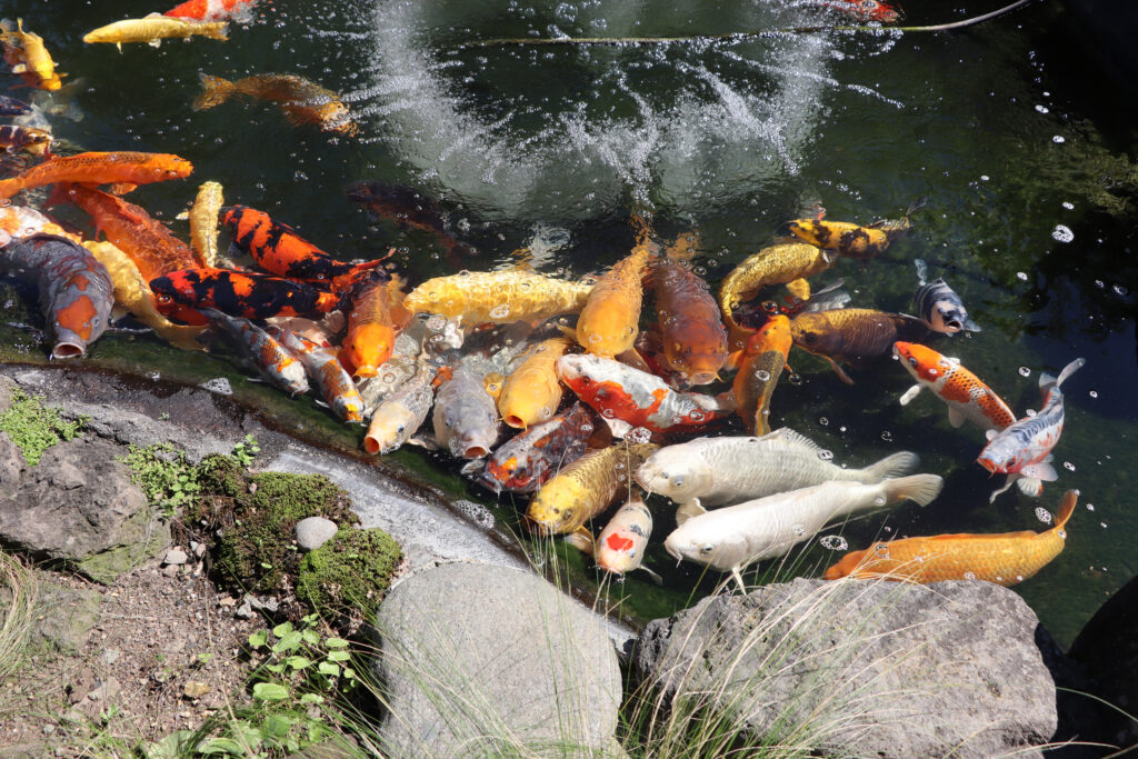 鯉の餌やりもできる池。おかげで立派な鯉に育っているようです
