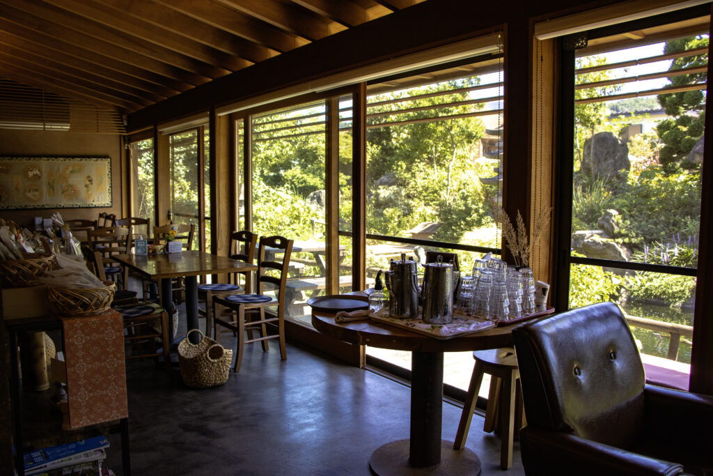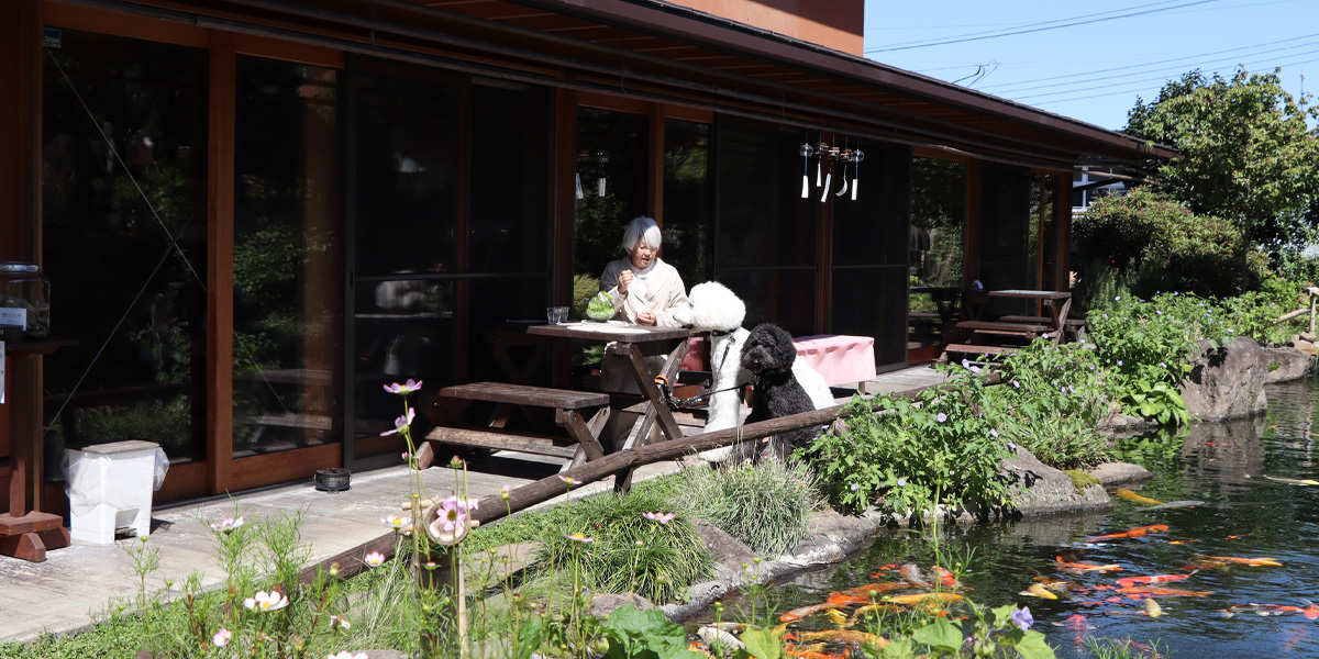 今回訪れたのは落ち着いた雰囲気で和を感じる「庭園喫茶 錦」。手入れされた素敵なお庭を眺めながらゆっくりとした時間を過ごせるカフェなのだ。天気が良い日は外の軒下にも席が用意され、池にいる錦鯉の優雅な動きを見ながら過ごすこともできるようになっている。そしてこの席は嬉しいことにわんこ同伴が可能だ。