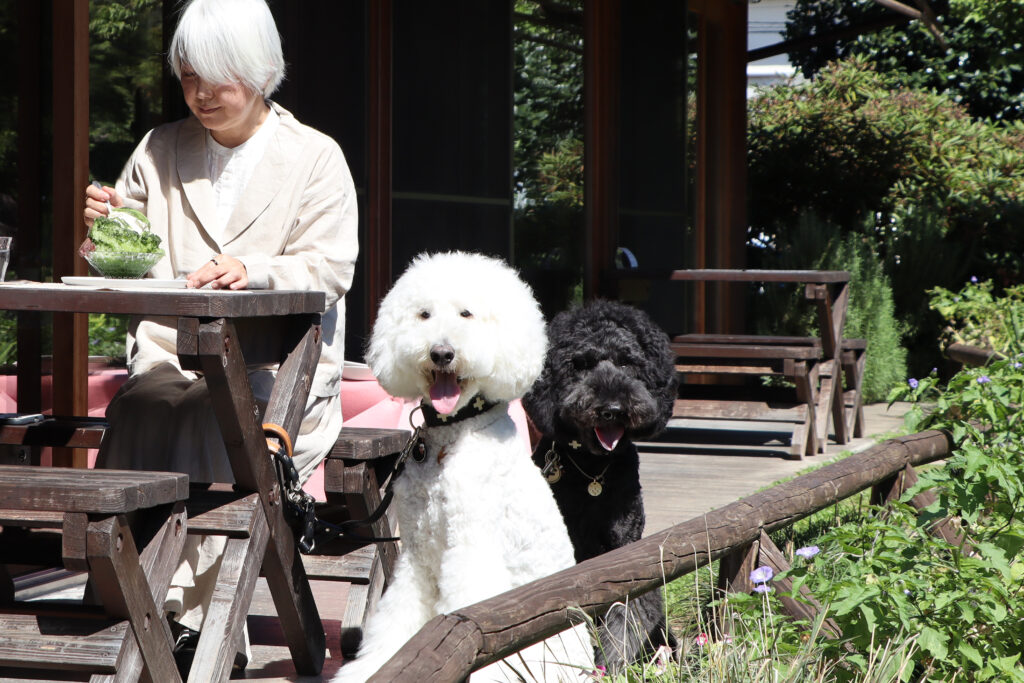 【ペット】お天気の良い日のテラスのみ・大型犬 OK・ペット用食事なし・椅子に座らせる場合はカフェマット持参・リードフックなし・予約可