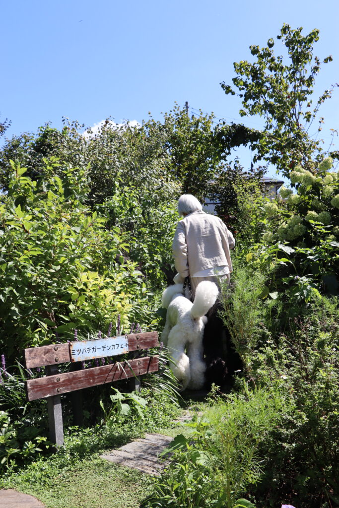 美味しいかき氷を食べた後改めて庭園を見学していると、「ミツバチガーデンカフェ」と書いてある看板を発見。矢印の先には小路があるのだがこれはいったい・・・(次回に続く)