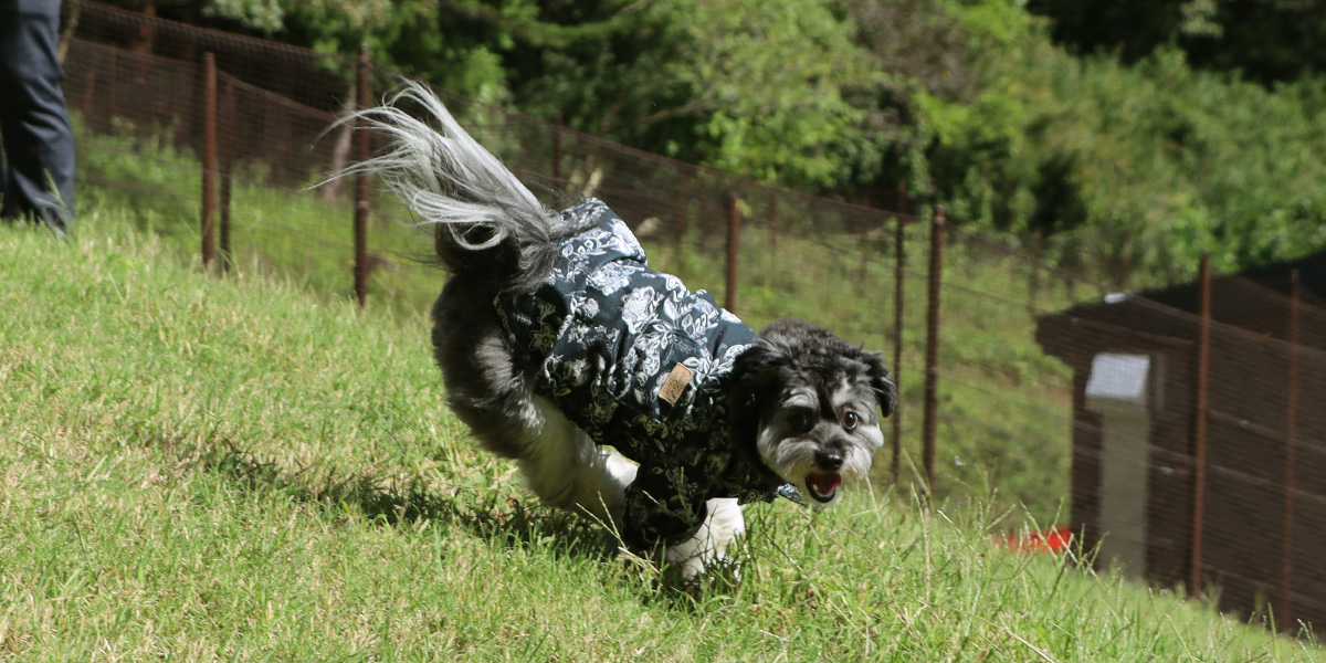 ちょっと語弊があるかもしれないが、ここのドッグランは普通じゃないらしい。なんでも自然の傾斜を活かしたドッグランらしく、事前に見ていた編集部Mがわんこが本当に走り回るのか、不安を口にしていたほどだった。