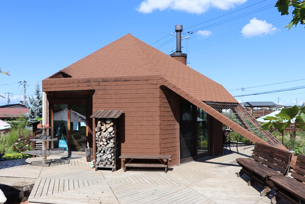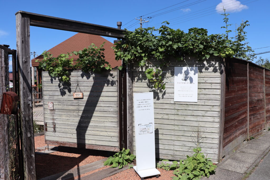 先日訪れた山形蔵王の「庭園喫茶 錦」は日本庭園の美しさも味わえる素敵な大人のカフェだった。(→詳しくはこちら)その庭園の中にあった小さな道しるべには「ミツバチガーデンカフェ」の文字。矢印が示す方に目を向けるとそこには奥へと続く小路があり「どうぞこちらへ」と呼んでいるかのよう。誘われるままに進んで行くといつの間にか日本庭園から西洋庭園のようになっており、その美しい秋の草花に蝶が舞っていた。そんな景色を眺めながらさらに進むとその奥に茶色の建物が現れた。どうやらここが「ミツバチガーデンカフェ」のようだ。