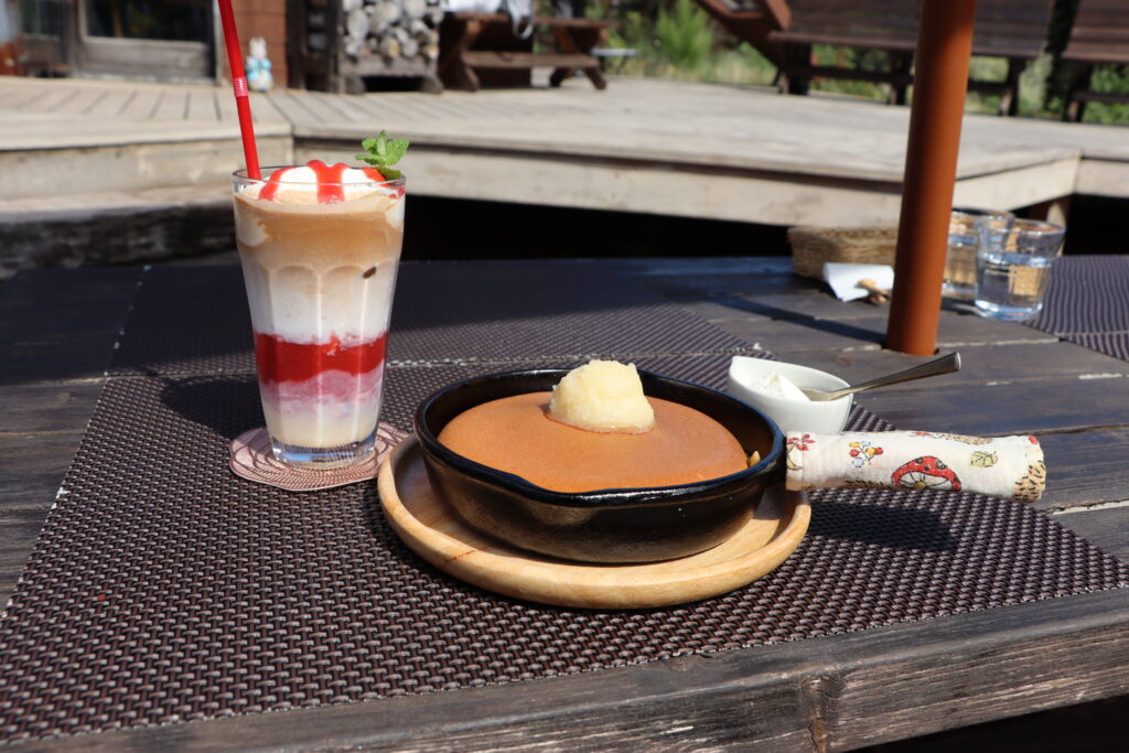 こちらのお店でもパンケーキがメインということで、一番人気のスノーハニーパンケーキをいただいた。しっかりと焼かれたパンケーキの上に乗っているのが結晶ハチミツとバターを練り合わせたもので香りと風味が際立っている。さらに一緒についてくるフレッシュクリームの方は軽くてとても口当たりが良く、どちらもパンケーキをさらにおいしくしてくれる。先に紹介した「庭園喫茶 錦」もパンケーキがウリだが、あちらは和風でこちらは洋風。他にも焼き菓子やチェリーパイなどがあり、「庭園喫茶 錦」同様食事系のパンケーキも用意されている。こちらのお店でもその甘じょっぱさが人気だが、錦とはまた違った種類のものになるのでぜひ食べ比べてみてほしい。