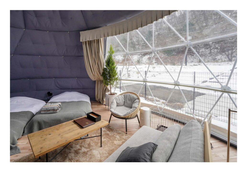 また、【GLAMP SEASON】は東北最大級のグランピング施設です。世界都市をテーマにしたドームで、四季の移ろいを感じながら非日常のひとときをお楽しみいただけます。