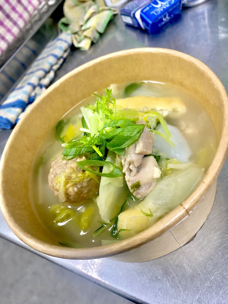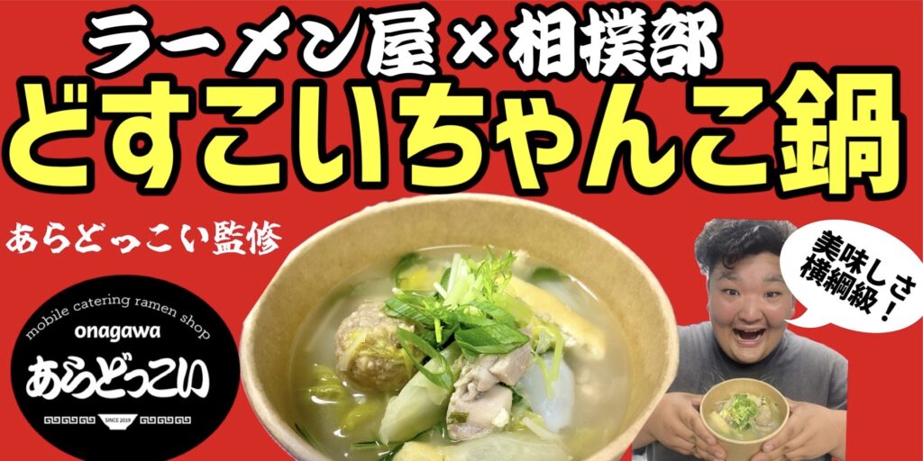 本気を出しました『塩鶏出汁ちゃんこ鍋』、海鮮たっぷり『上海焼きそば』『ジャンボ串焼き』を販売いたします!ちゃんこ鍋は数量限定ですのでお早めにお買い求めくださいね♪