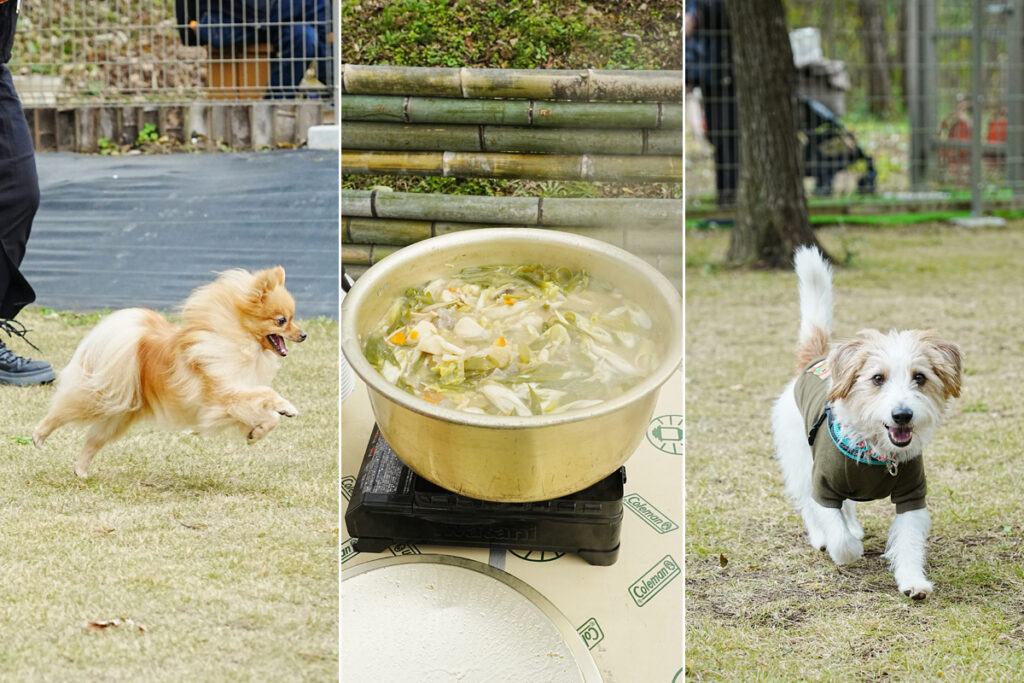 この日もたくさんのわんちゃんたちにお集まりいただきありがとうございました。みなさんハピネスさんが用意してくれたお振舞いの芋煮、食べましたか??すごく具沢山で美味しかったですね。ワタクシお言葉に甘えて何回もおかわりしちゃいました💦それから出張販売してくれたMOKUさんのお弁当も良かった。焼肉弁当と豚の唐揚げ弁当、秘伝のタレが効いていてどちらも旨かったです。ハピネスさんから車で5分ほどの所にあるMOKUさんはお庭に席があるのでわんことご飯食べに行けますよ~。ここのお店のお肉は・・・