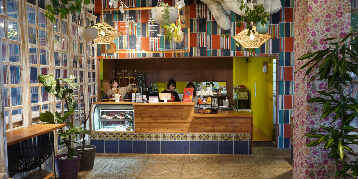 五橋通りに面したRielat Cafe & Me time(リエラカフェ&ミータイム)。入口の赤いドアが印象的なこちらのお店では美味…
